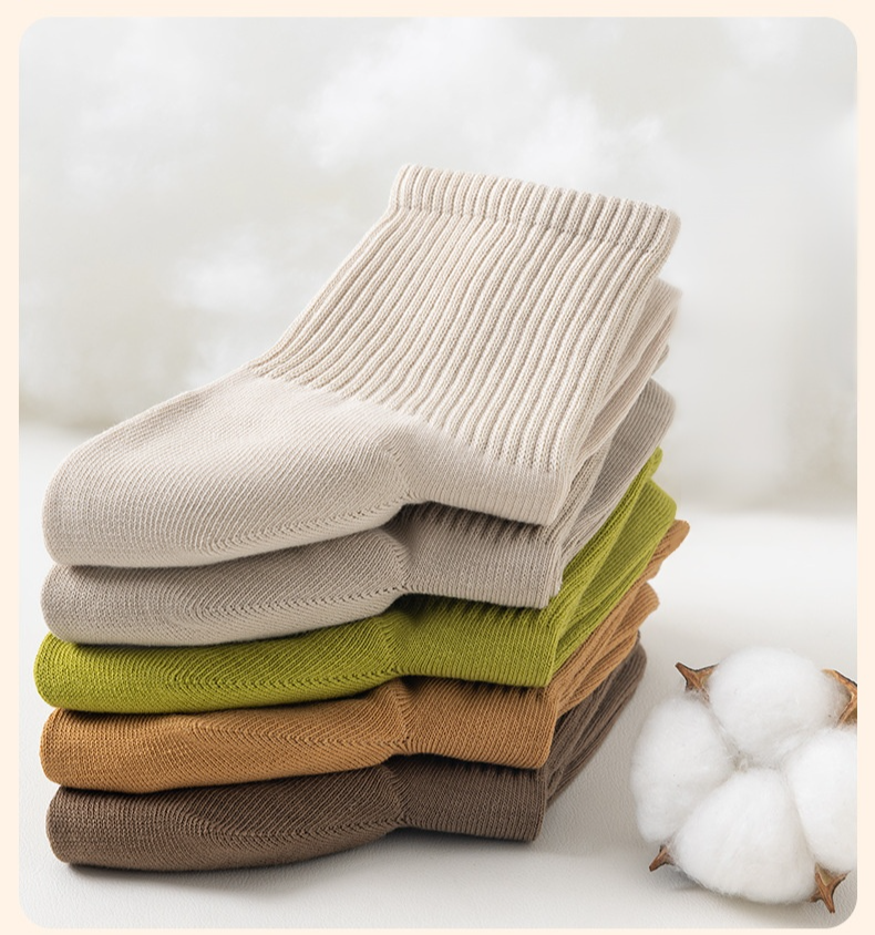 Calcetines de algodón de tubo medio, diseño en ángulo recto